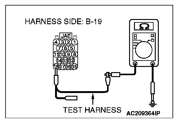 4. Measure the resistance between joint connector (3) terminal 19 and body ground.