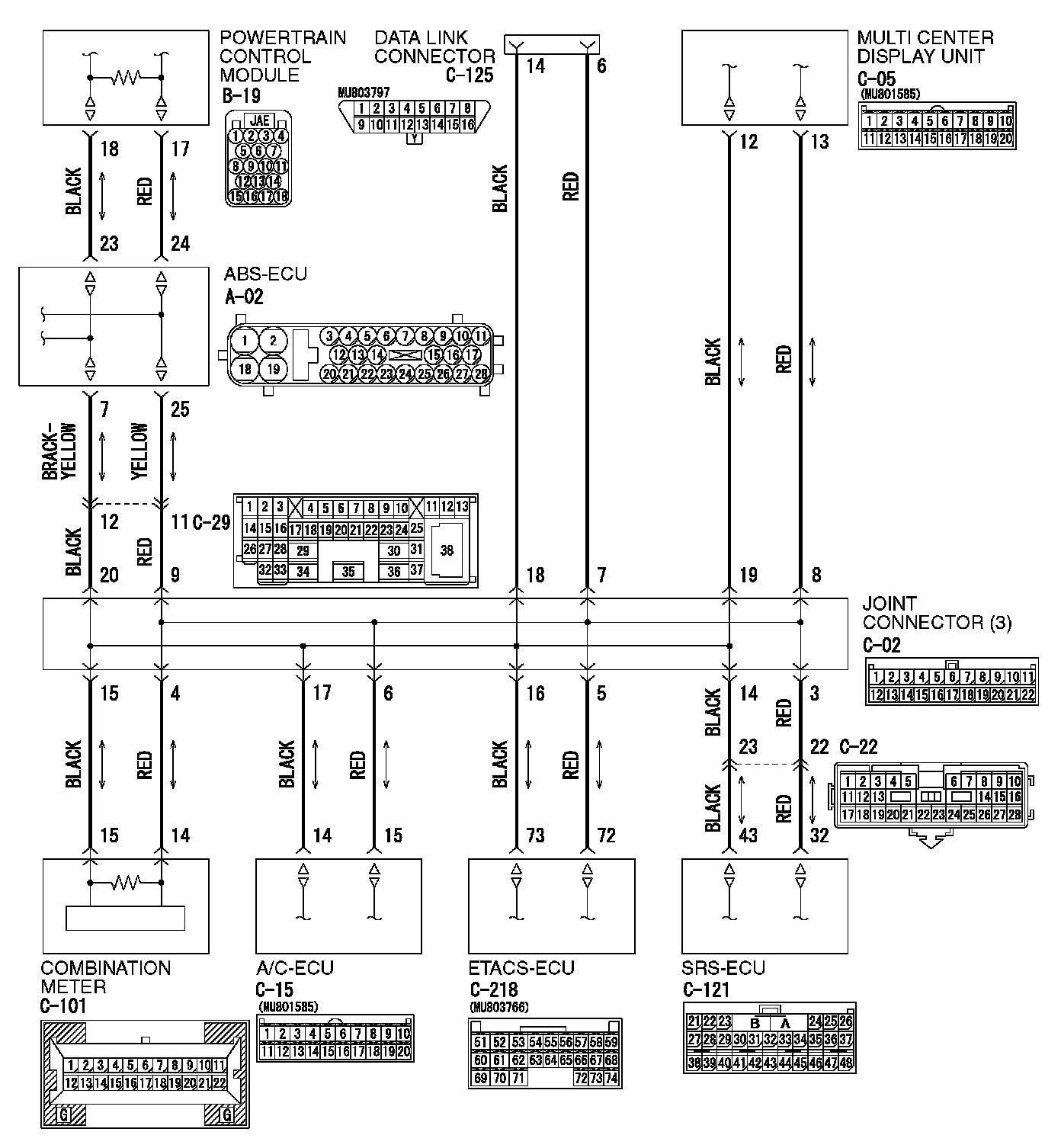 STEP 8. Check the CAN_L and H lines (communication lines including the ETACS-ECU) between joint connector (3) and the ETACS-ECU for a short circuit. Measure the resistance at joint connector (3) C-02.
