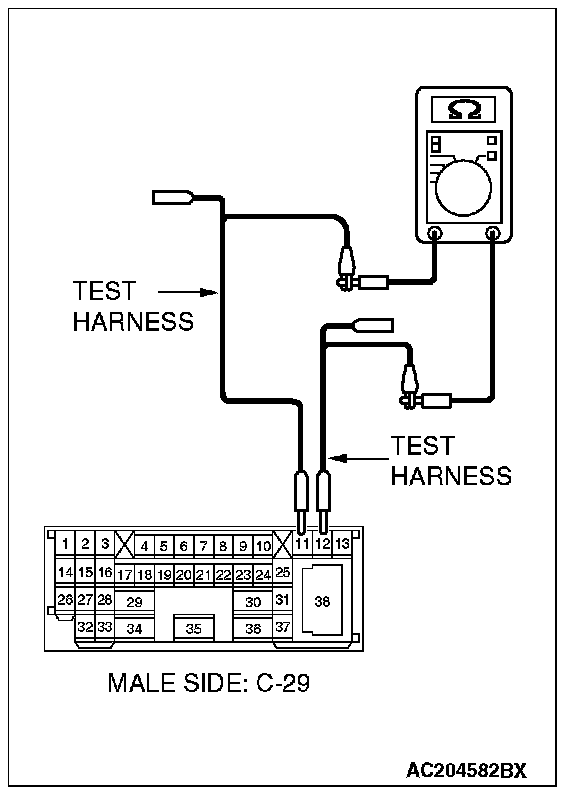 1. Disconnect intermediate connector C-29, and measure the resistance at the male side (at front wiring harness side).