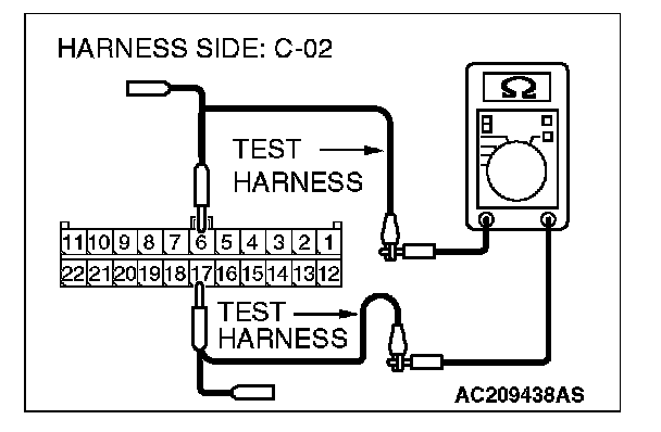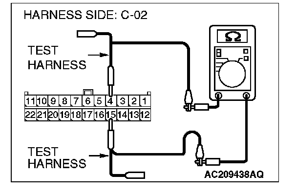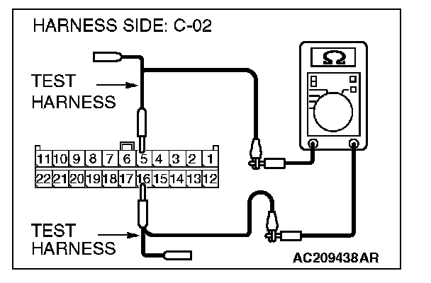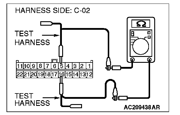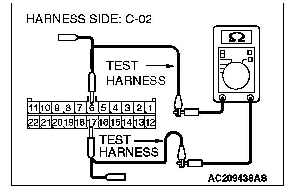1. Disconnect joint connector (3) C-02 and ETACS-ECU connector C-218, and measure the resistance at the wiring harness side of joint connector (3) C-02.