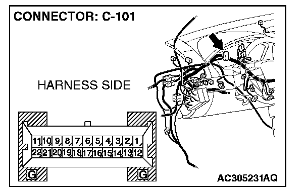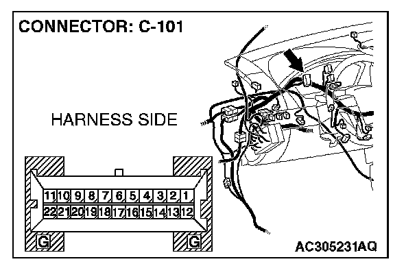 STEP 5. Check combination meter connector C-101 for loose, corroded or damaged terminals, or terminals pushed back in the connector.