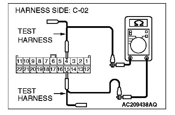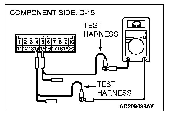 1. Disconnect A/C-ECU connector C-15, and measure the resistance at the component side of A/C-ECU connector C-15.