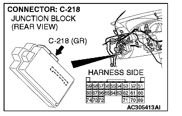 STEP 9. Check ETACS-ECU connector C-218 for loose, corroded or damaged terminals, or terminals pushed back in the connector.