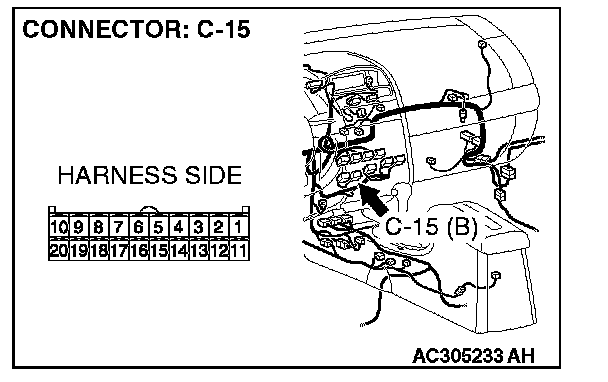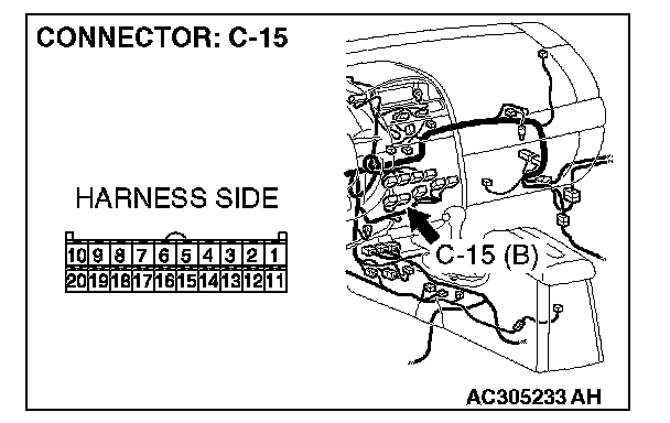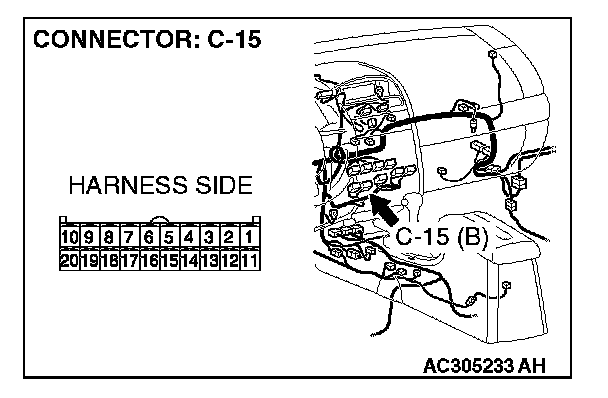 STEP 13. Check A/C-ECU connector C-15 for loose, corroded or damaged terminals, or terminals pushed back in the connector.