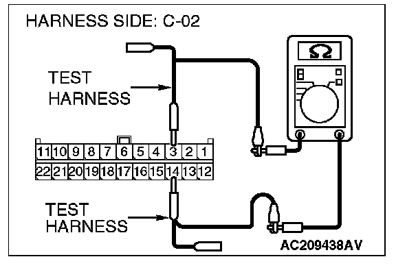 1. Disconnect joint connector (3) C-02, and measure the resistance at the wiring harness side of joint connector (3) C-02.