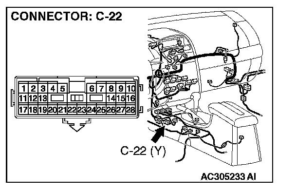 STEP 17. Check intermediate connector C-22 for loose, corroded or damaged terminals, or terminals pushed back in the connector.