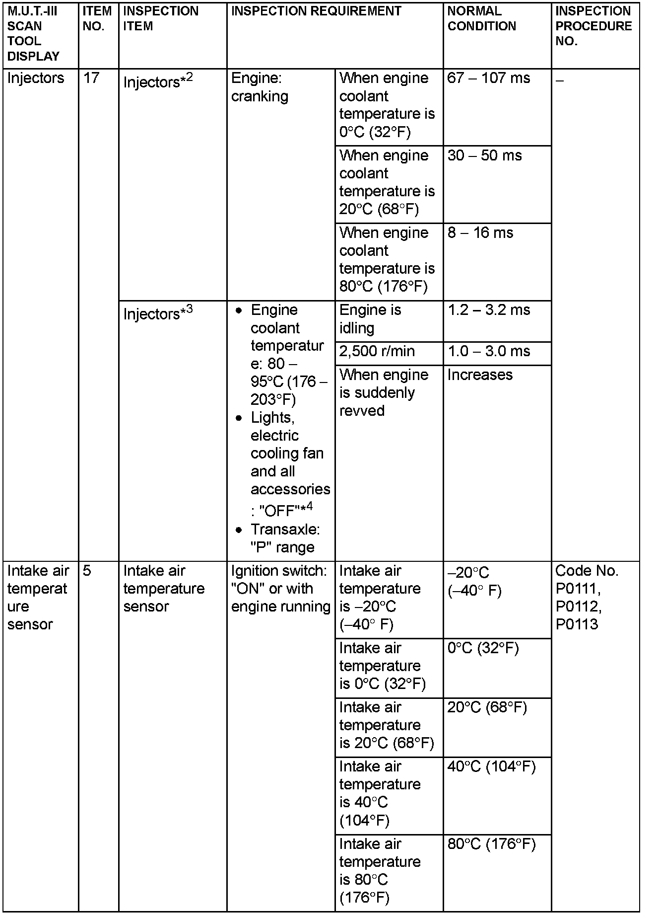 NOTE: *3: In a new vehicle [driven approximately 500 km (311 mile) or less], the injector drive time is sometimes 10 percent longer than the standard time.