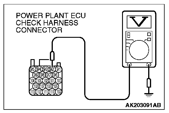 1. Disconnect all PCM connectors. Connect the power plant ECU check harness special tool MB991923 between the separated connectors.