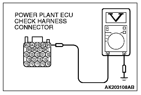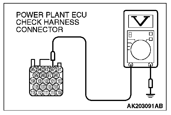 1. Disconnect all PCM connectors. Connect the power plant ECU check harness special tool MB991923 between the separated connectors.