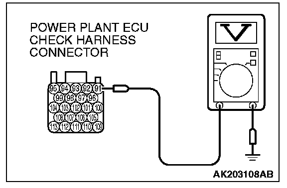 1. Disconnect all PCM connectors. Connect the power plant ECU check harness special tool MB991923 between the separated connectors.
