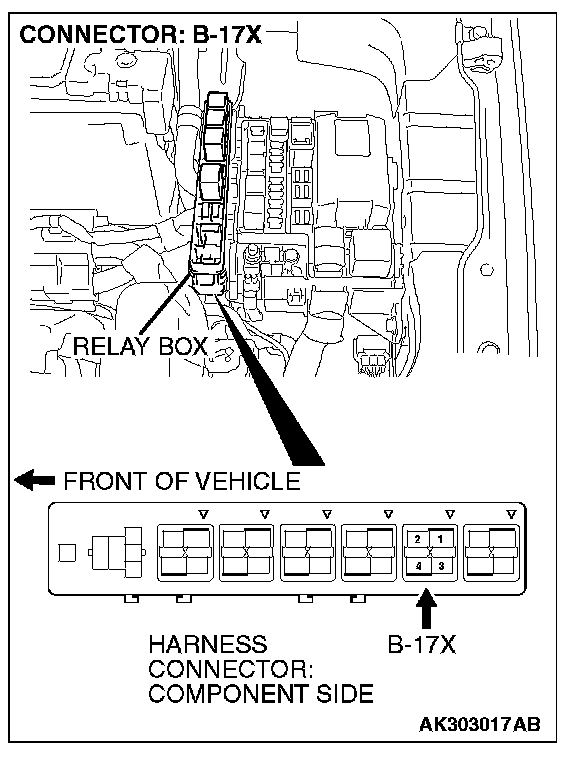 STEP 1. Check harness connector B-17X at MFI relay for damage.