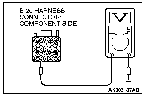 1. Disconnect the connector B-20 and measure at the harness side.