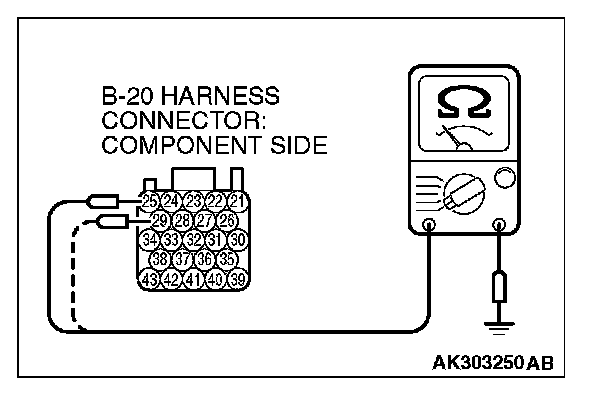 NO: Repair harness wire between PCM connector B-20 (terminal No. 25, No. 29) and ground because of open circuit. Then confirm that the malfunction symptom is eliminated.