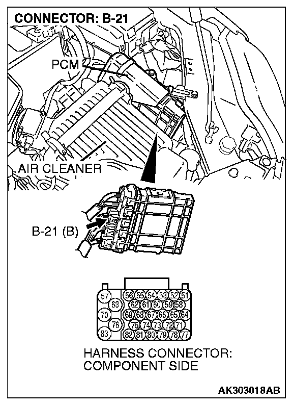 STEP 8. Measure the power supply voltage at PCM harness side connector B-21.