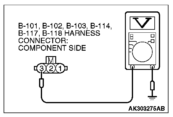 STEP 3. Measure the power supply voltage at ignition coil connectors B-101, B-102, B-103, B-114, B-117, B-118.