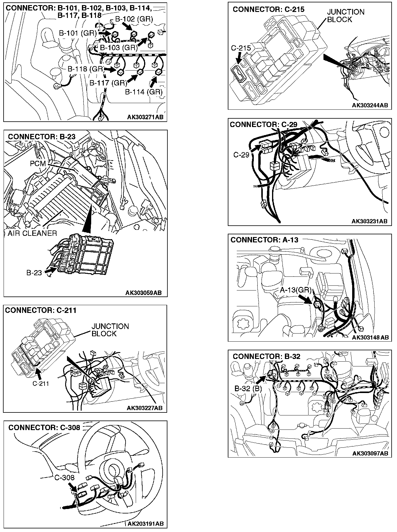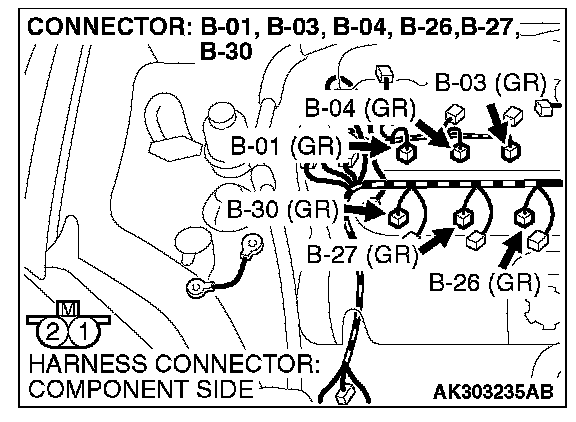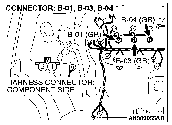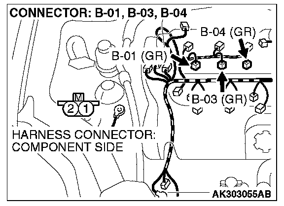 STEP 11. Check harness connector B-01 or B-03 or B-04 at right bank injector for damage.