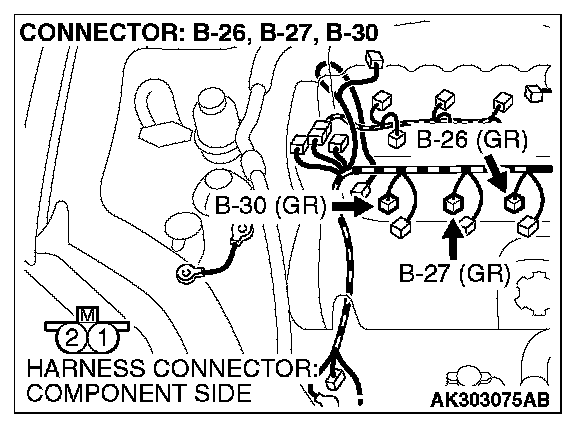 1. Disconnect the left bank injector connector B-26, B-27, B-30.