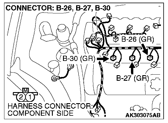1. Disconnect the left bank injector connector B-26, B-27, B-30.