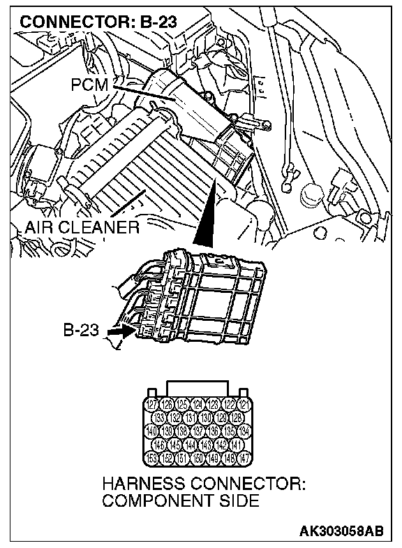 STEP 14. Check harness connector B-23 at PCM for damage.