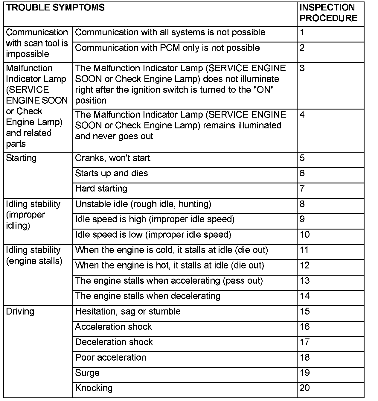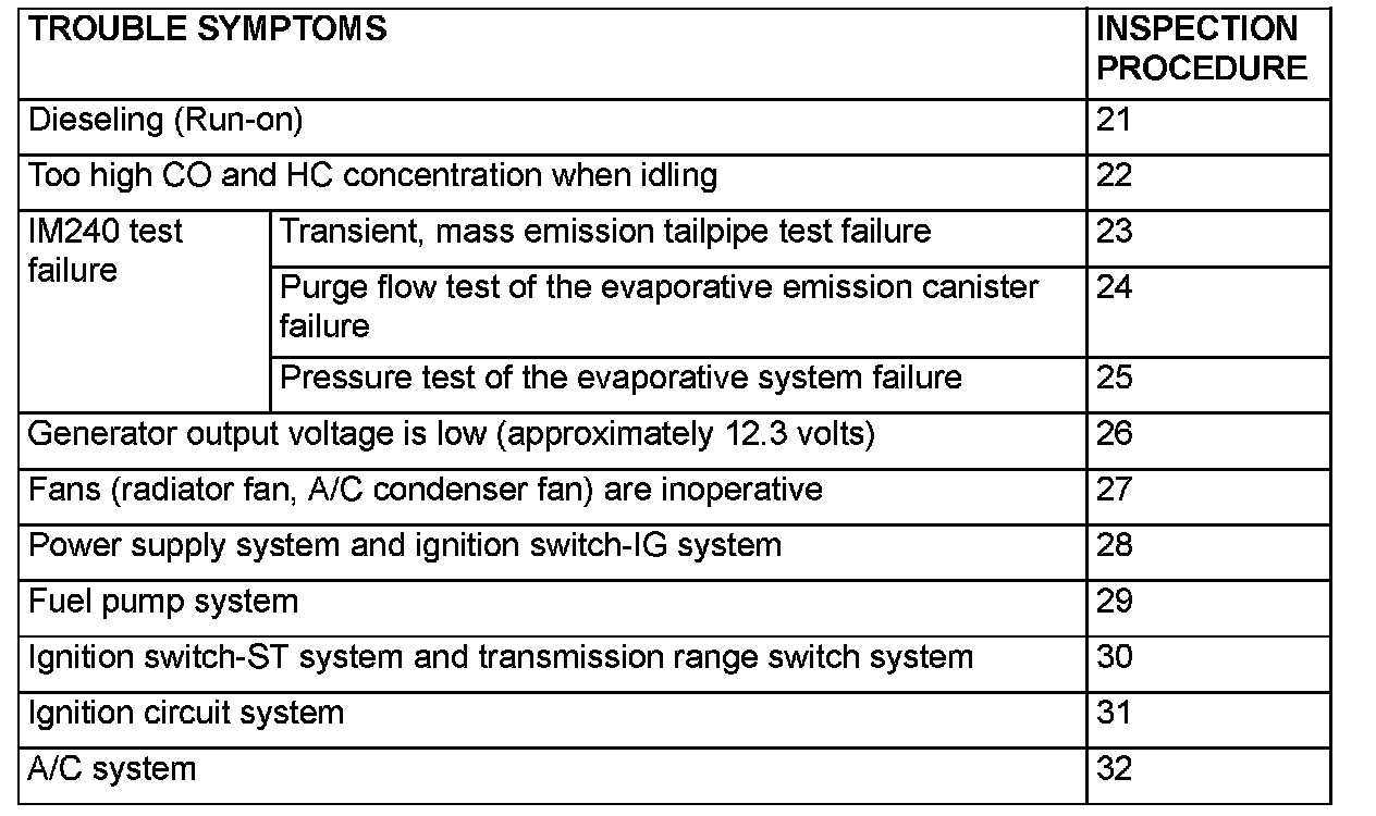 SYMPTOM CHARTInspection Chart For Trouble Symptoms Part 1:
