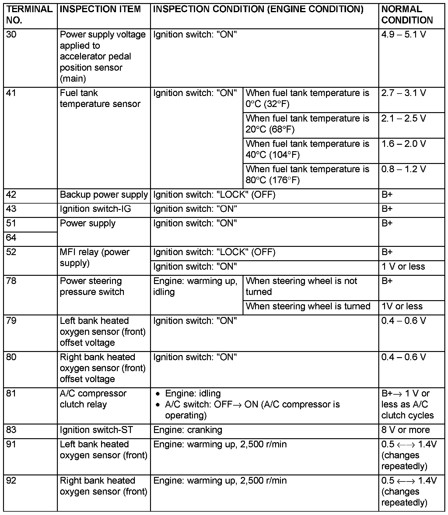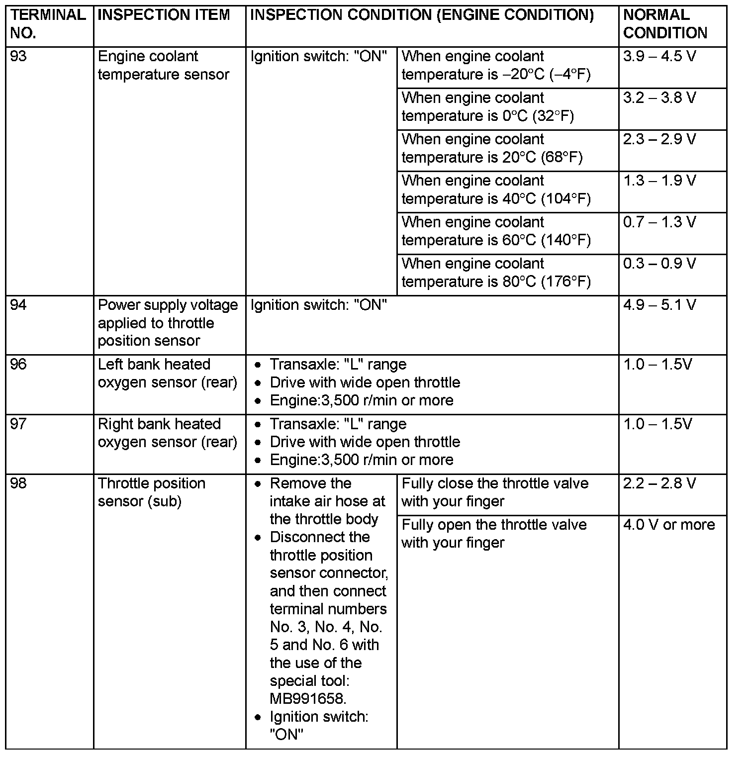 Check Harness Special Tool MB991923 Connector Terminal Arrangement Part 2: