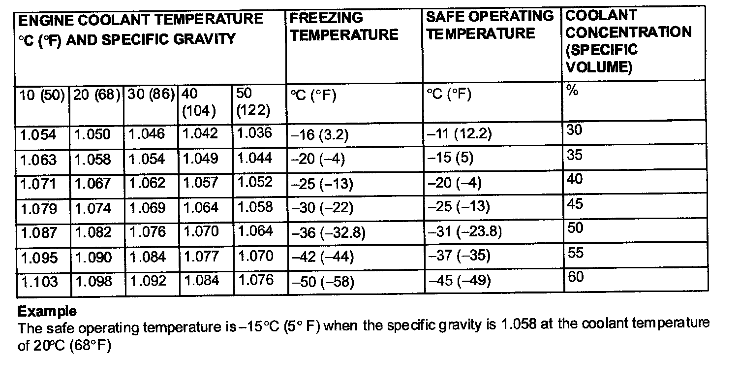 - If the concentration of the coolant is below 30%, the anti-corrosion property will be adversely affected. In addition, if the concentration is above 60%, both the anti-freeze and engine cooling properties will decrease, affecting the engine adversely. For these reasons, be sure to maintain the concentration level within the specified range.