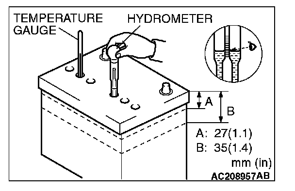 2. Use a hydrometer and temperature gauge to check the specific gravity of the electrolyte