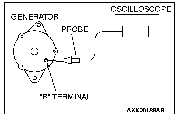 If the ripple height is abnormally high (approximately 2 V or more during idling), the wires between the generator "B" terminal and the battery have broken due to fuse blowing, etc. The generator is usually operating properly.