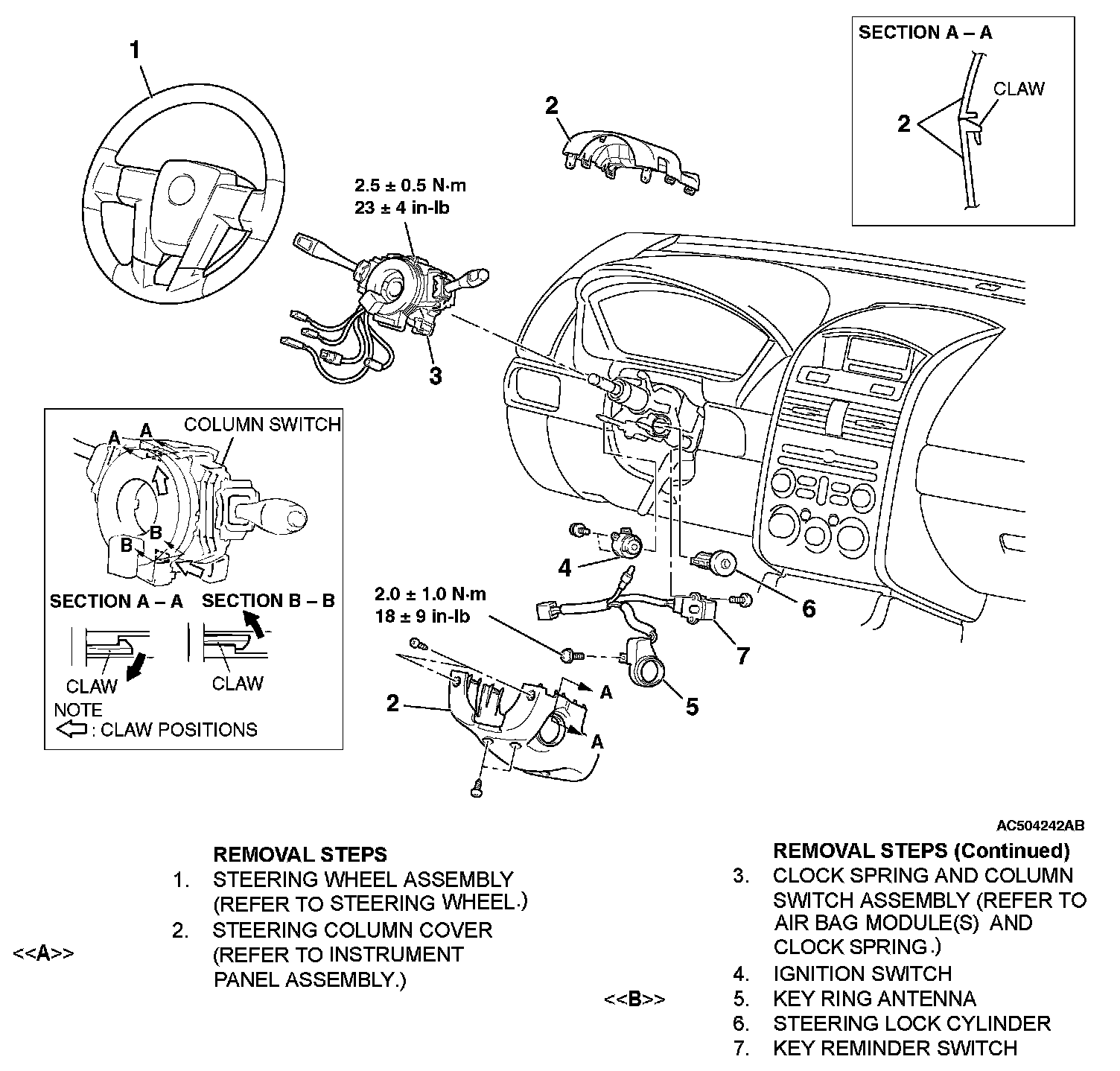 IGNITION SWITCHRemoval Steps 1-7: