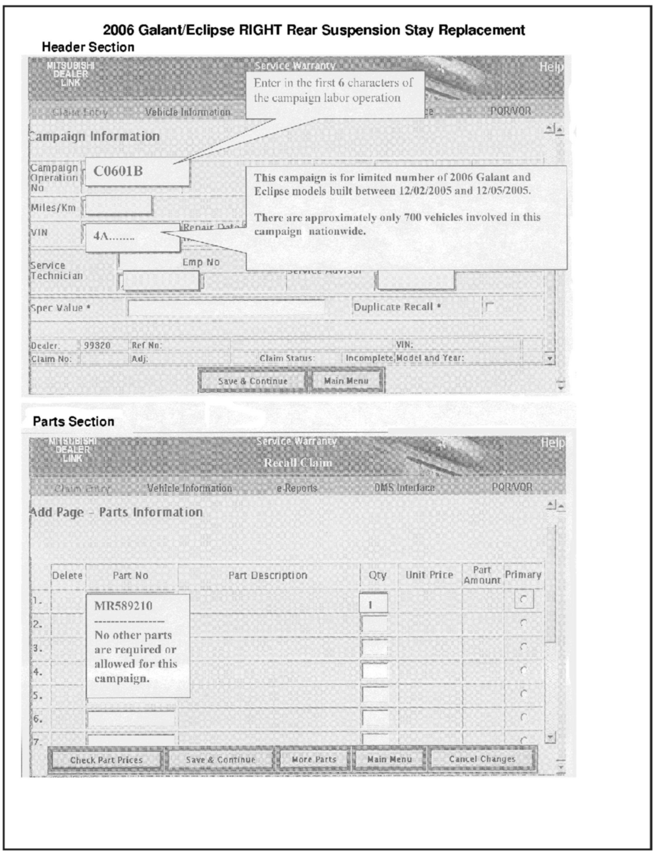 A letter will be sent to all registered owners, asking them to return their vehicle to their Mitsubishi Motors dealer for rear suspension stay replacement. A sample copy of the letter is shown in this bulletin.