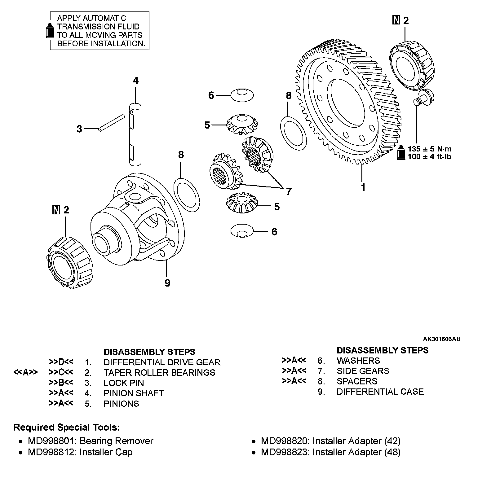 >>A<< SPACER, SIDE GEAR, WASHER, PINION AND PINION SHAFT INSTALLATION