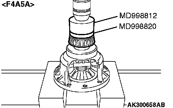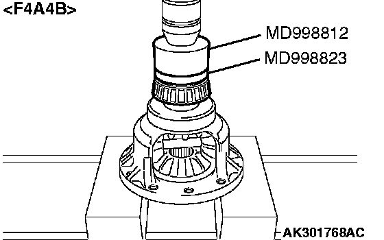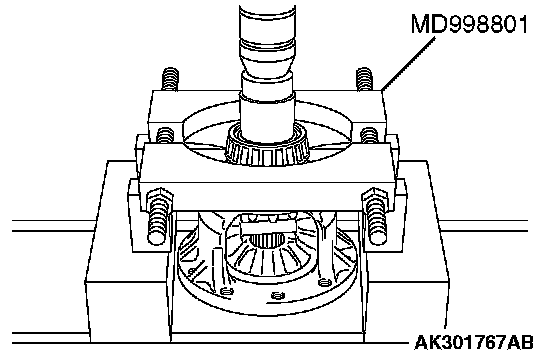 1. Support the taper roller bearing with special tool MD998801, and then set them on the press.