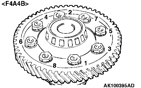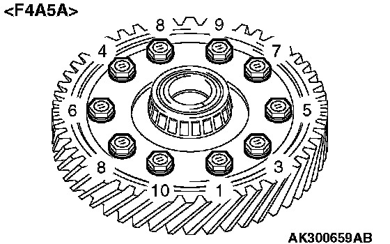 Apply ATF to the bolt, and then tighten the bolts to the specified torque in the sequence shown.