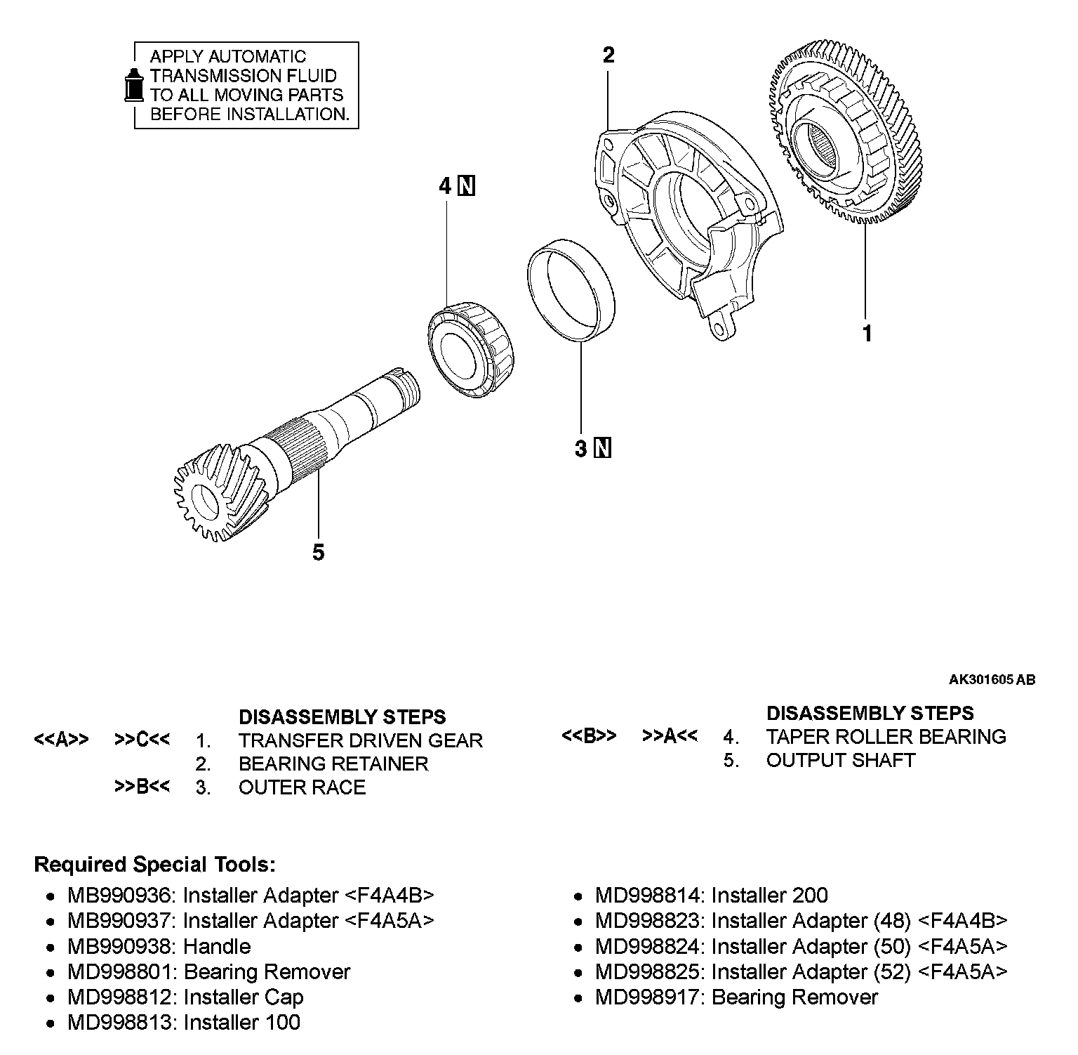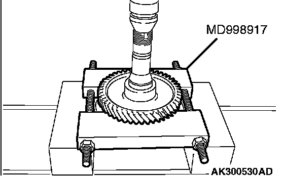 1. Support the transfer driven gear with general service tool or special tool MD998917, and then set them on the press.