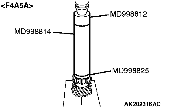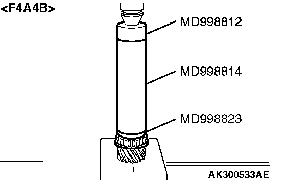 1. Support the taper roller bearing with the special tool MD998801, and then set them on the press.