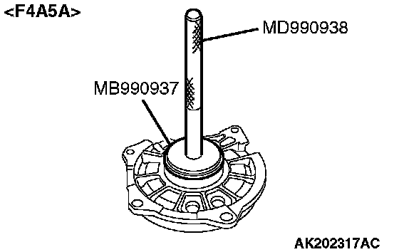 Use special tools MB990936 or MB990937 and MB990938 to tap the outer race in the bearing retainer.