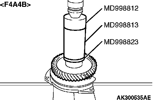 2. Using special tools MD998823 or MB998824 , MD998812 and MD998813, press in the transfer driven gear.