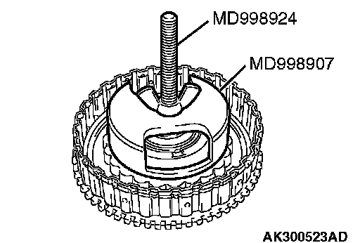 1. Set special tools MD998907 and MD998924 as shown in the illustration.