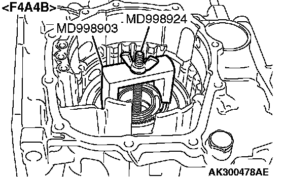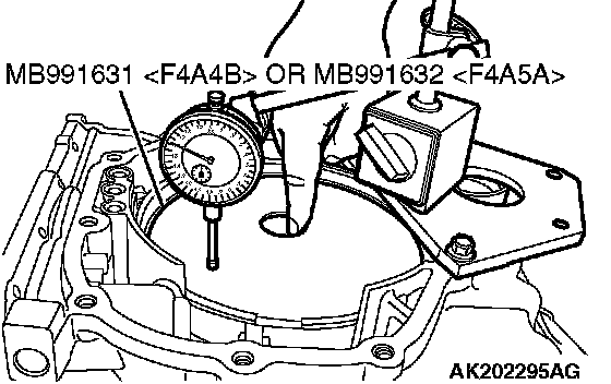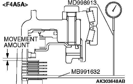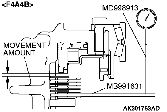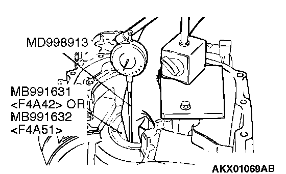Install special tool MD998913 in a dial gauge, and then move special tool MB991631