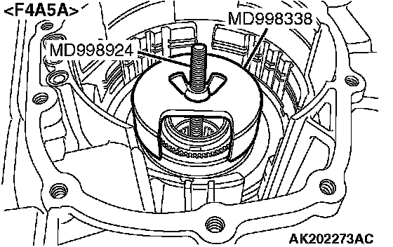 20. Remove all parts and special tools that were installed to take the measurements in steps 9 to 18. Remove and separate the pressure plate and snap ring chosen in steps 12, 16 and 18.