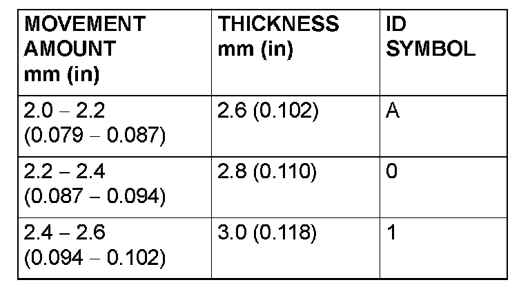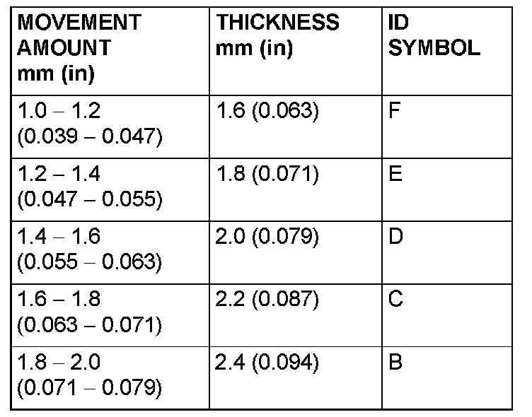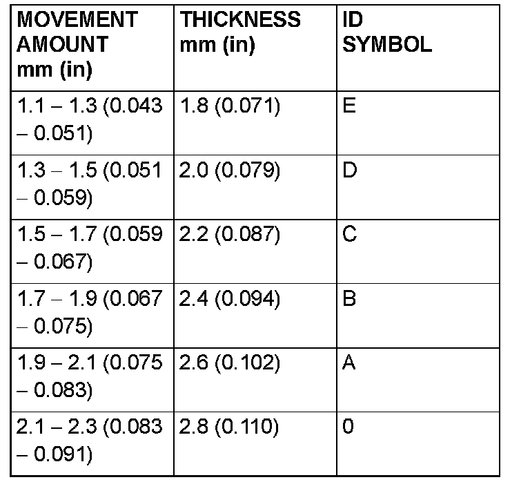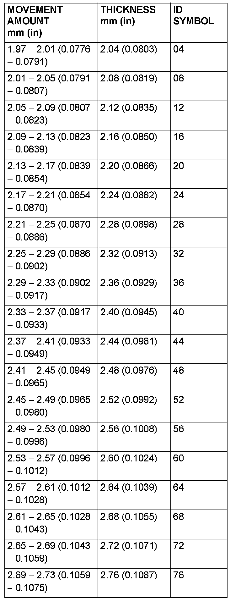 28. Select a spacer whose thickness corresponds to the measured amount of movement from the following table.