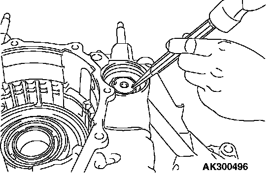 21. Install the snap ring into the groove of transaxle case output shaft bore.