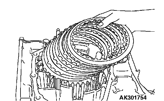 ^ Apply ATF to friction components, rotating parts, and sliding parts before installation. Immerse new clutch discs or brake discs in ATF for at least two hours before assembling them.