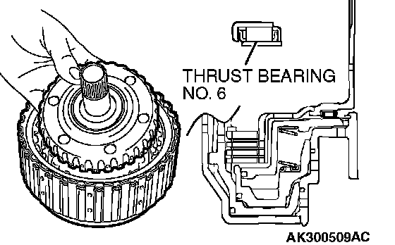 CAUTION: Be sure to install the thrust bearing in the correct direction as shown.