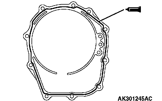 51. Apply a 2 mm (0.08 inch) diameter bead of sealant (MITSUBISHI Genuine Part number MD974421 or equivalent) to the illustrated position of the rear cover.