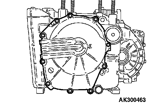 18. Turn the transaxle over so that the installation surface of the torque converter housing is facing up.