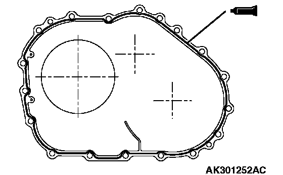 81. Apply a 2 mm (0.08 inch) diameter bead of sealant (MITSUBISHI Genuine Part number MD974421 or equivalent) to the torque converter housing in the area shown.
