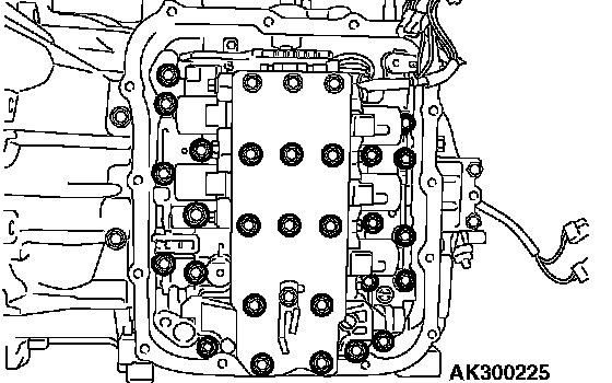 94. Install the valve body mounting bolts (twenty seven pieces), and tighten to the specified torque.