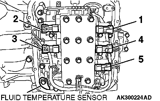 95. Attach the solenoid valve harness to the valve body by connecting the fluid temperature sensor and all the connectors.