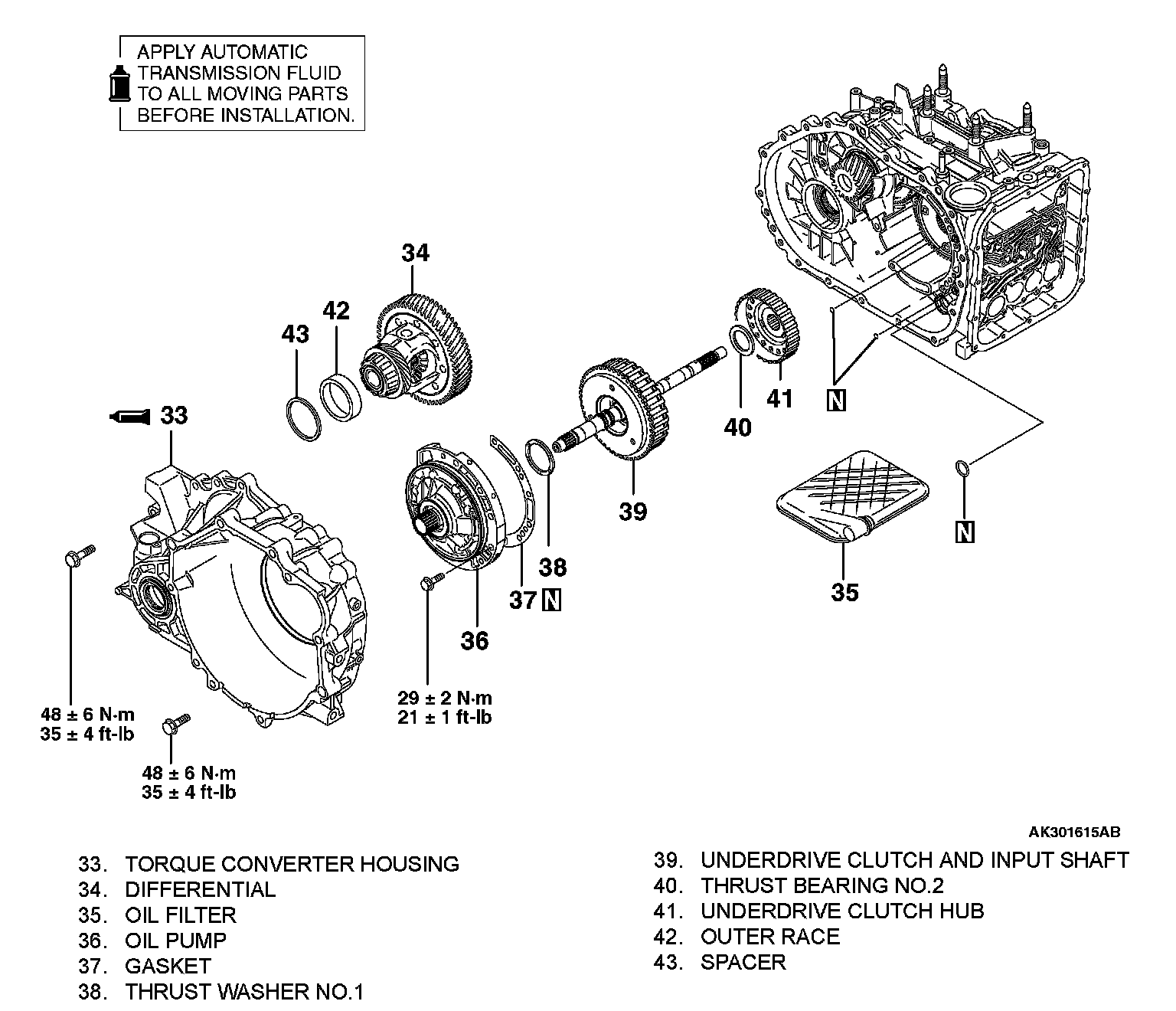 ^ Because the automatic transaxle is manufactured from high-precision parts, care must be taken not to scratch or damage these parts during disassembly and assembly.